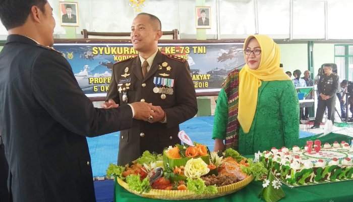 Tanganrakyat.id – Indramayu -Kodim 0616/Indramayu peringati Hari Ulang Tahun Tentara Nasional Indonesia (HUT TNI) ke 73, Jum’at (05/10/2018), Peringatan ini diawali dengan melakukan upacara bendera dihalaman depan makodim, lalu dilanjutkan syukuran dan potong tumpeng.