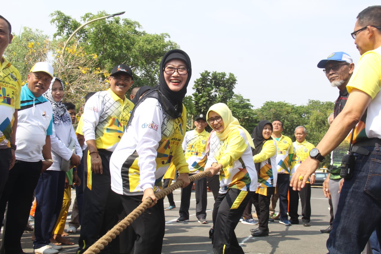Tanganrakyat.id -Indramayu – Bupati Indramayu bersama dengan para kepala dinas melakukan eksebisi perlombaan tarik tambang bersama dengan ASN Diskominfo. Dan para kepala dinas melakukan eksebisi bersama dengan para kepala bidang dan sekretaris dari masing-masing SKPD.