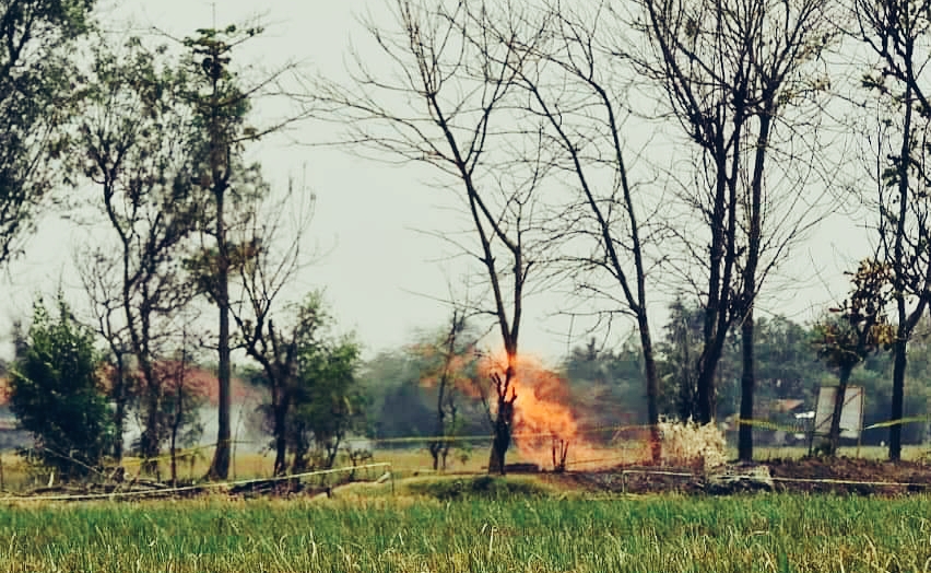 Kuatnya tekanan gas menimbulkan suara gemuruh yang cukup kencang terdengar hingga 5 kilometer, kali ini diikuti nyala api setinggi sekitar lima meter. Kobaran api setinggi itu lebih dari persitiwa sebelumnya yang terjadi pada akhir Oktober hingga awal November 2020 lalu. (C.Tisna)