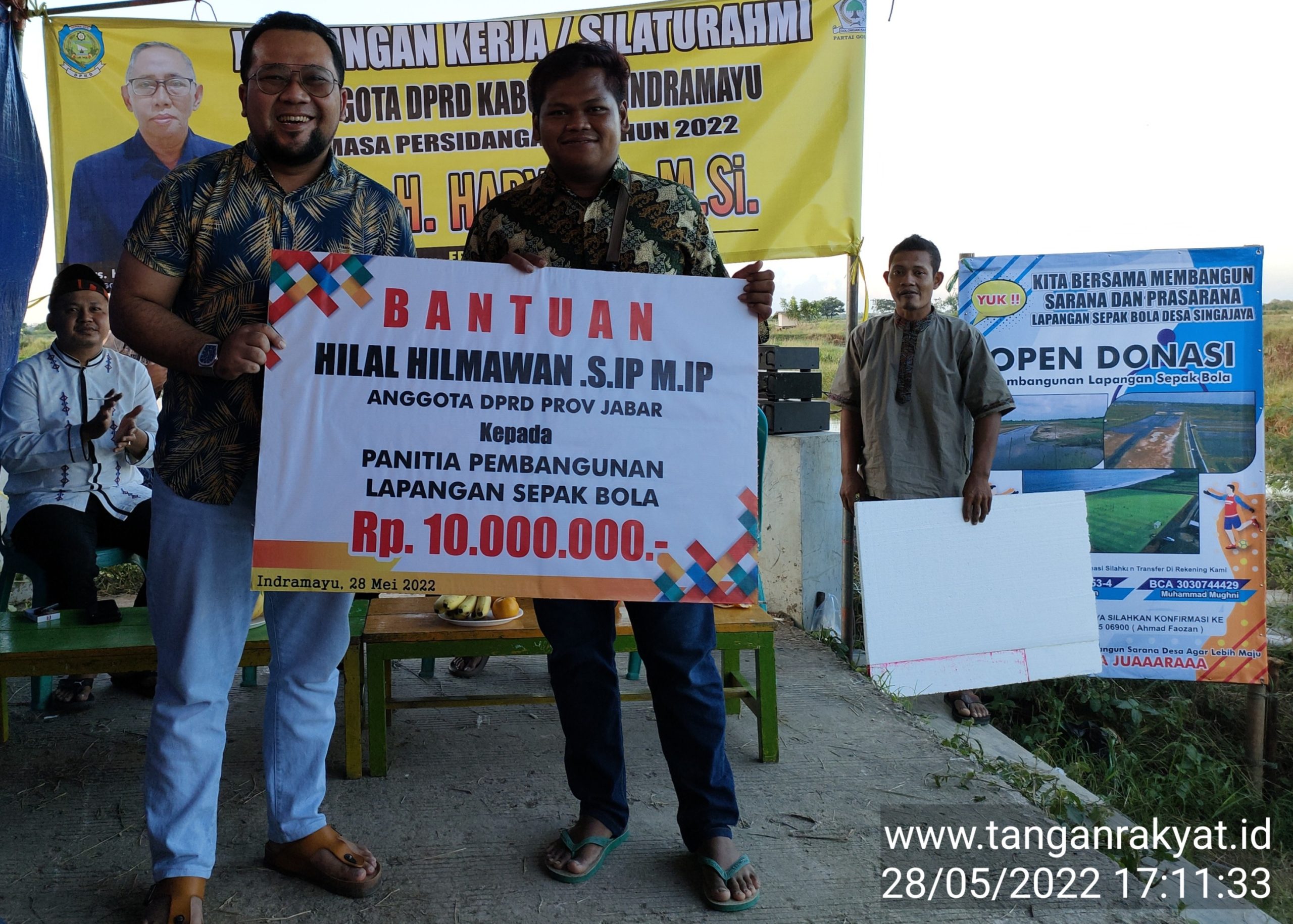 Hilal Hilmawan (33) Anggota Dewan Perwakilan Rakyat Daerah (DPRD) Provinsi Jawa Barat, Dapil XII (Kabupaten Cirebon, Kota Cirebon dan Kabupaten Indramayu) mengatakan, sebelumnya bersama-sama dengan Kepala Desa Singajaya sudah kita buatkan lapangan futsal, nah hari ini masyarakat Singajaya punya keinginan