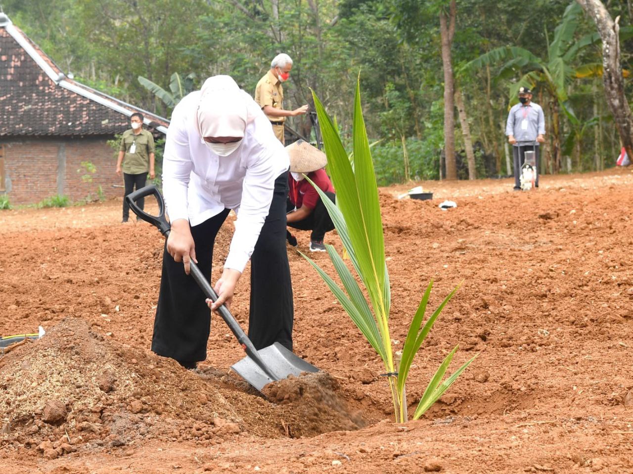 Ibu Iriana Joko Widodo bersama dengan para petani Kabupaten Sukoharjo melakukan penanaman kelapa genjah di Desa Sanggang, Kecamatan Bulu, Kabupaten Sukoharjo, Provinsi Jawa Tengah (Foto: Red)