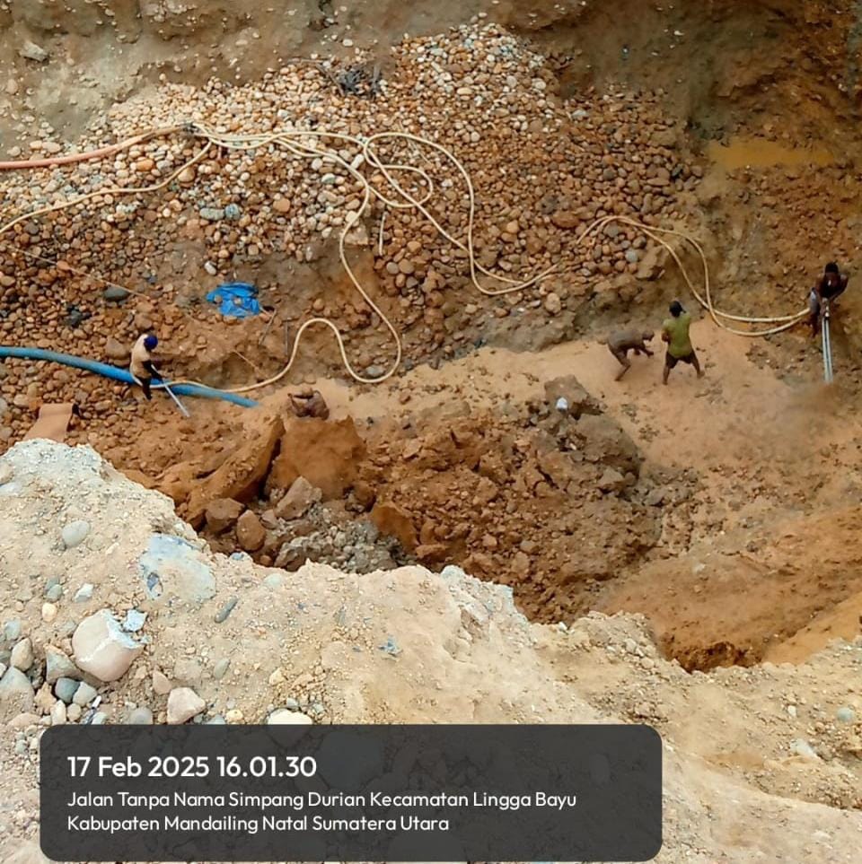 Sebelumnya, marak kembali penambangan emas tanpa izin (PETI) pada bekas lahan PT PT M3 di Kelurahan Tapus Kecamatan Lingga Bayu Kabupaten Mandailing Natal Senin.(17/02/25).