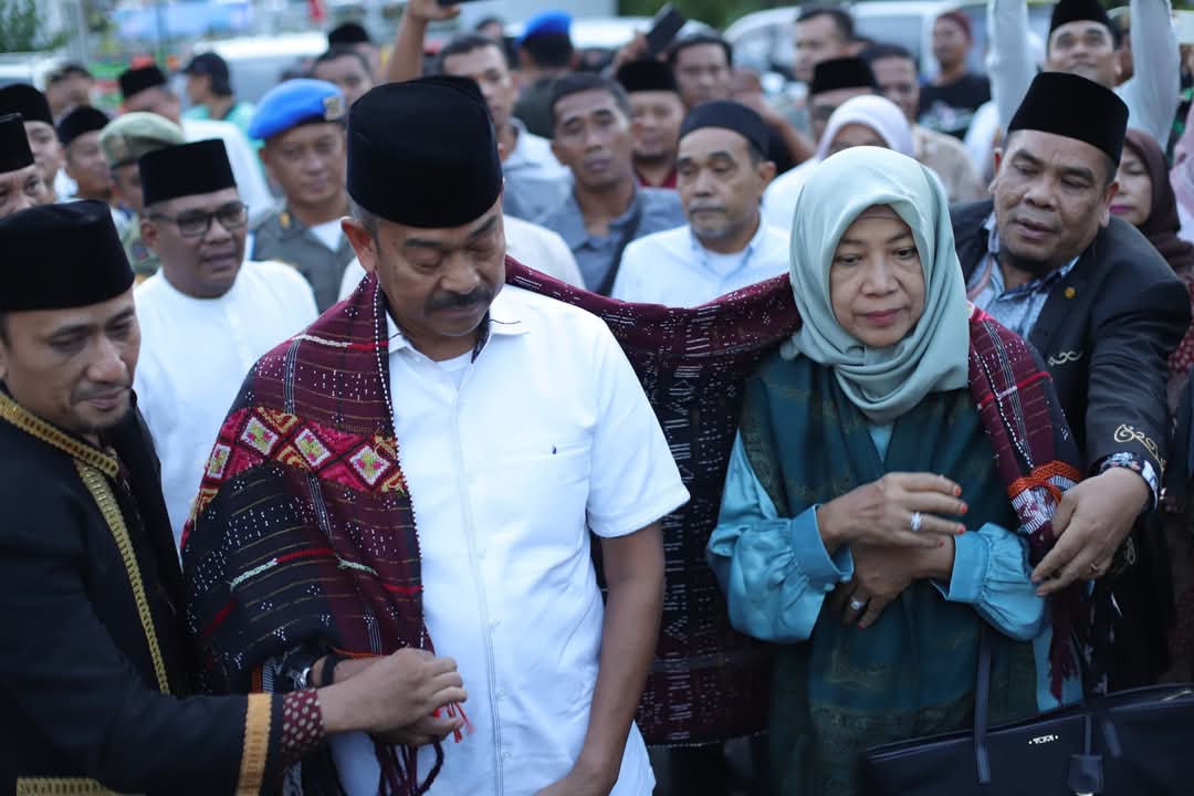Panyabungan, Madina, tanganrakyat.id – Suasana haru dan penuh sukacita menyelimuti Rumah Dinas Bupati Mandailing Natal (Madina) pada Minggu (23/3/2025) sore. Bupati H. Saipullah Nasution dan Wakil Bupati Atika Azmi Utammi Nasution, yang baru saja memenangkan kontestasi Pilkada 2024, disambut dengan meriah oleh jajaran Pemerintah Kabupaten (Pemkab) Madina dan ratusan warga.