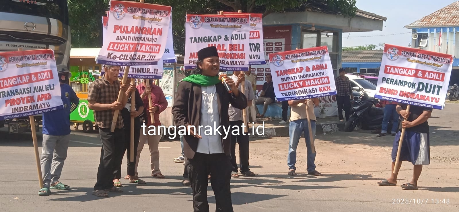 Koordinator Aksi, Muhammad Sholihin, dengan lantang menyatakan, “Dia tidak amanah… sebaiknya kita pilih pemimpin yang tahu karakteristik rakyat Indramayu aja.”