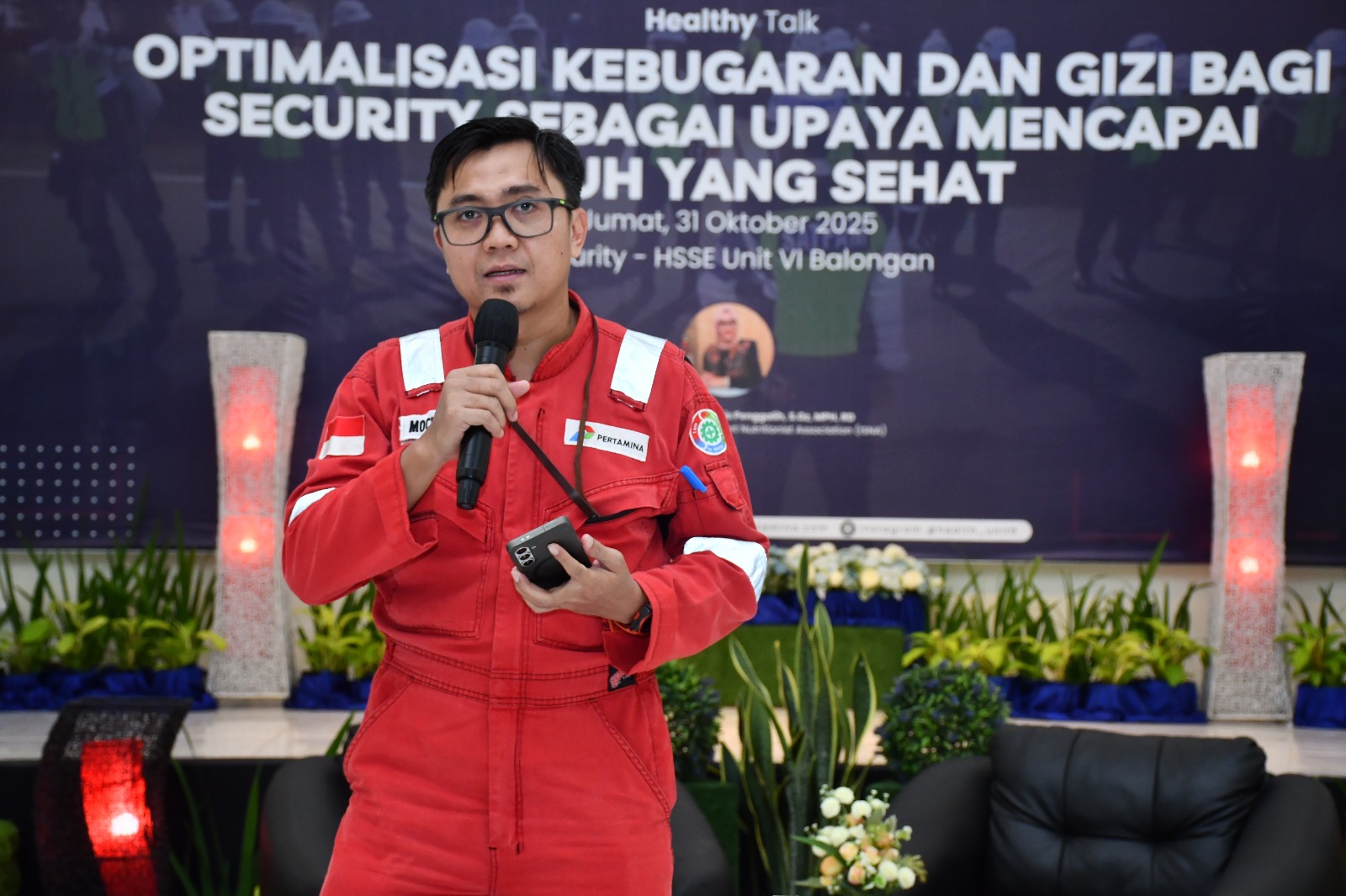 “Karyawan yang sehat tentu kerjanya akan lebih efektif dan produktif, terlebih tugasnya adalah menjaga keamanan, tentu butuh fisik yang kuat, sehat dan bugar” ungkap Arifin saat membuka wellness security, di Aula Bumi Patra Indramayu, Jum’at (31/10/2025).