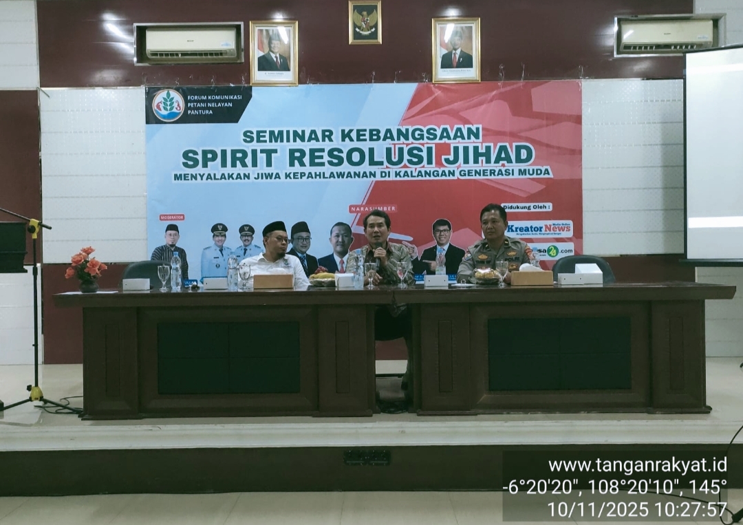 Indramayu, tanganrakyat.id – Ketua Umum DPP Prawita GENPPARI, Dr.Ir. Dede Farhan Aulawi, S,H, M.M ,CHT., menyerukan reinterpretasi makna Resolusi Jihad dalam Seminar Kebangsaan “Spirit Resolusi Jihad” yang diadakan di Aula Kemenag Indramayu pada 10 November 2025.