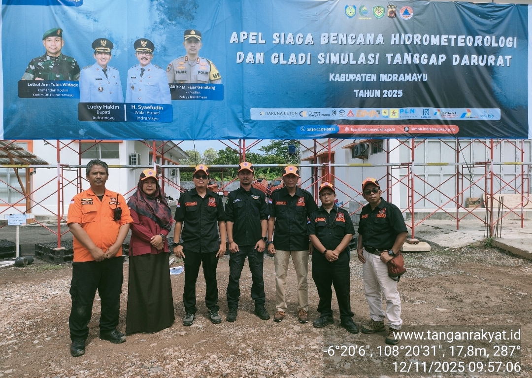 Indramayu, tanganrakyat.id – Pemerintah Kabupaten Indramayu menunjukkan keseriusan penuh dalam menghadapi ancaman bencana hidrometeorologi yang kerap melanda, mulai dari banjir, rob, puting beliung, hingga kekeringan. Hal ini ditandai dengan digelarnya Apel Siaga Bencana dan Gladi Simulasi Tanggap Darurat Tahun 2025 pada Selasa (12/11/2025) di halaman Kantor BPBD Kabupaten Indramayu.
