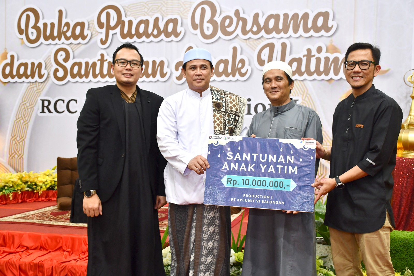 Penyaluran santunan dilakukan secara simbolis oleh Section Head RCC Kilang Balongan Andhika Oly Hendrawan kepada perwakilan pekerja untuk kemudian disalurkan kepada Pondok Pesantren Bahrurrohmah Alhidayah III, Desa Cikawung, Kecamatan Terisi, Kabupaten Indramayu, sebagai Ponpes yang mengayomi anak yatim.
